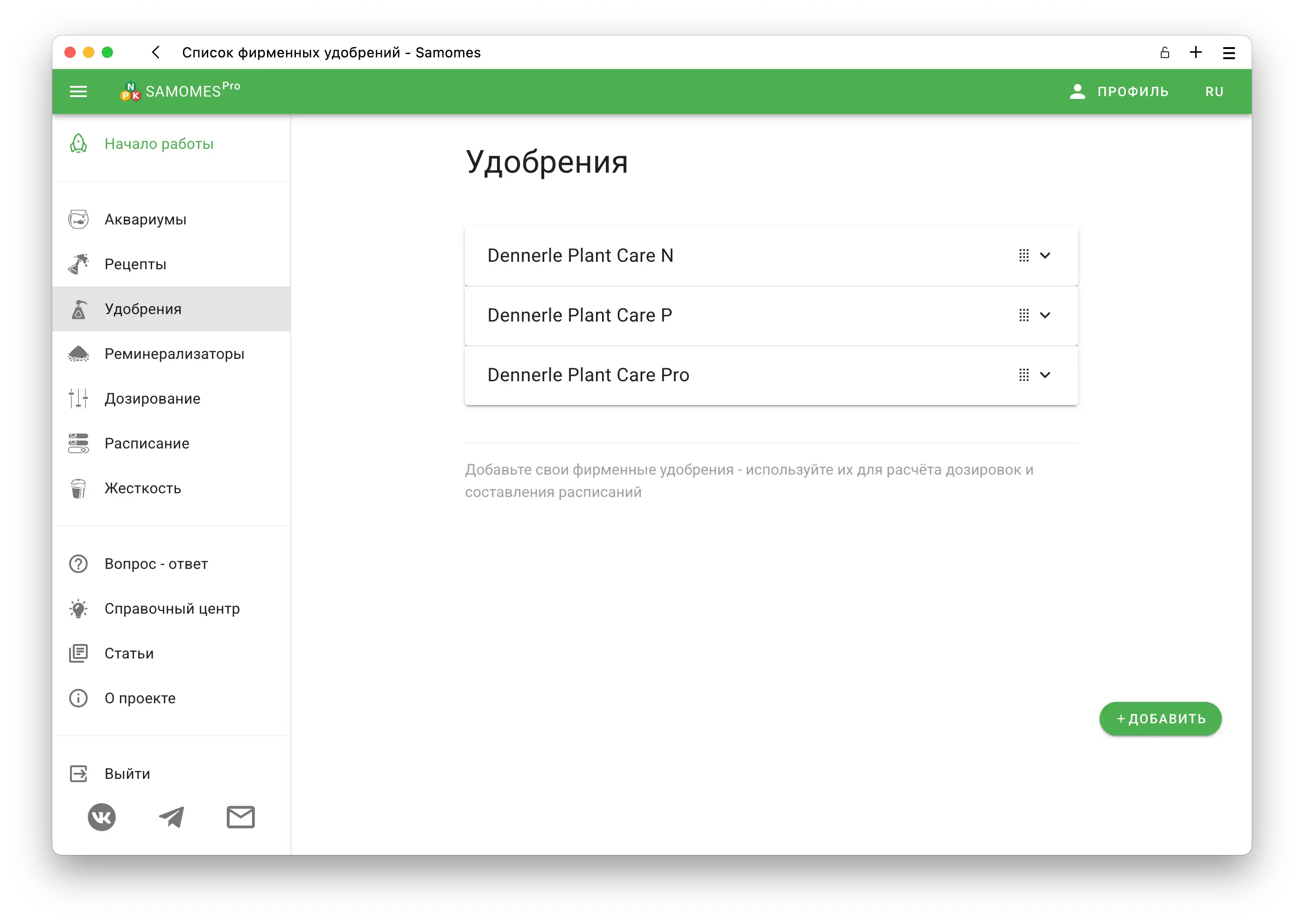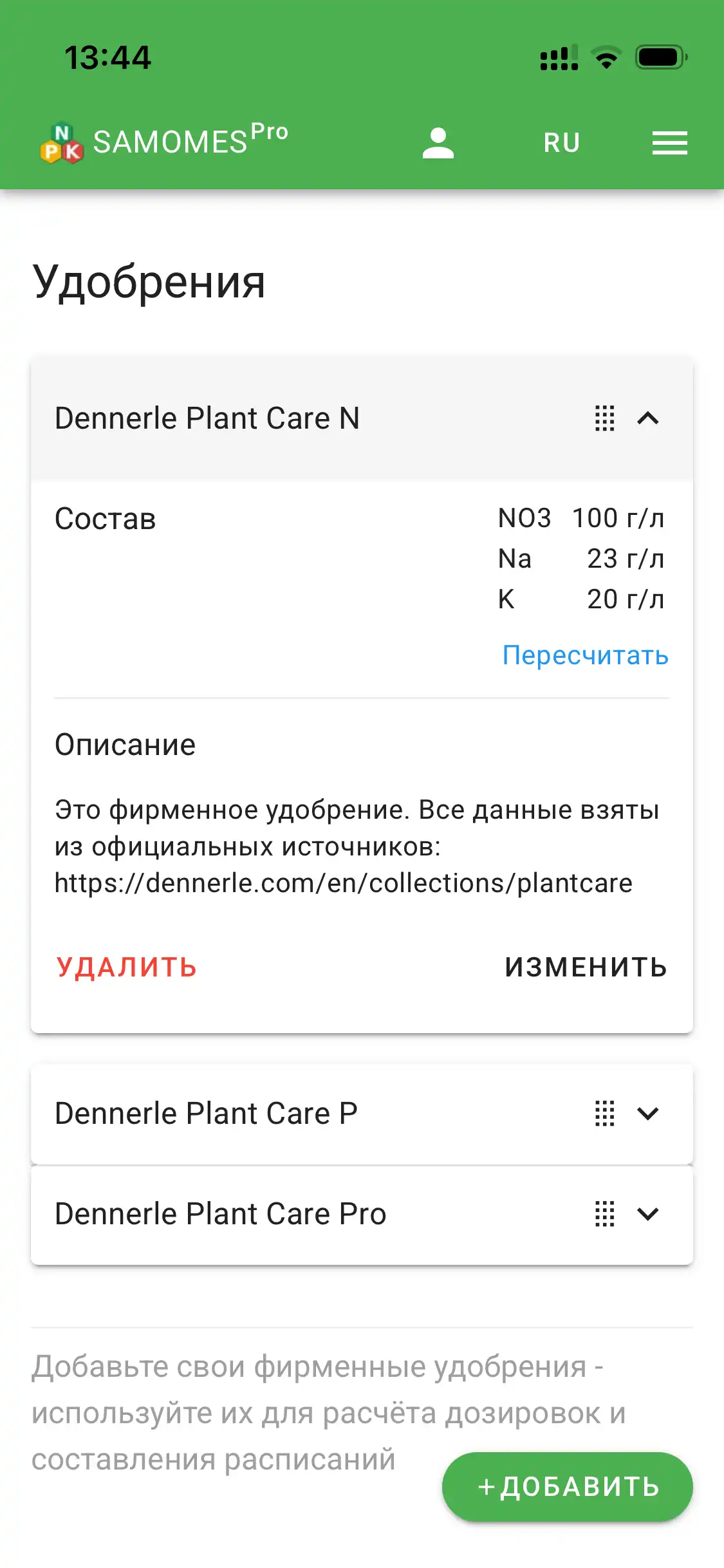 - Сохраните в список своих удобрений.