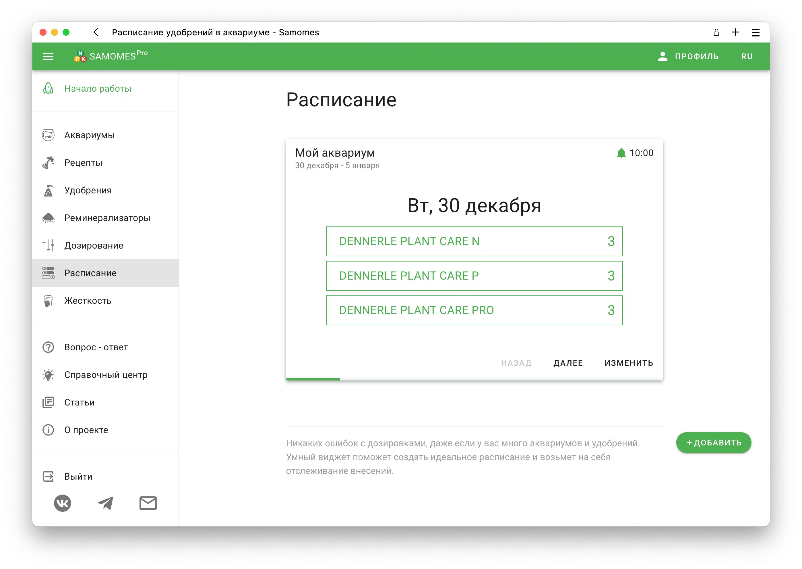 - Чтобы изменить расписание, воспользуйтесь гайдлайном "Как изменить расписание внесения удобрений в Samomes?"