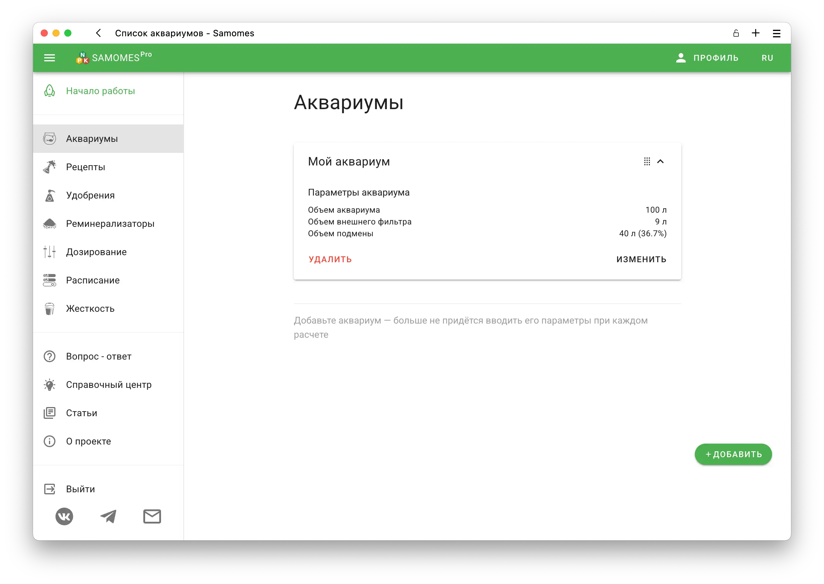 - В боковом меню слева выберите раздел Аквариумы и нажмите “Добавить”.